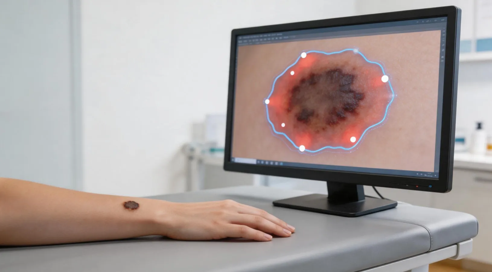 Искусственный интеллект в дерматологии появился вокруг этой тревожной зоны. AI-системы анализируют изображения кожи, дерматоскопические снимки и данные осмотра, чтобы помочь врачу оценить подозрительные образования. Главный интерес связан с меланомой — опасной формой рака кожи, которую важно обнаружить как можно раньше. Алгоритм может сравнивать визуальные признаки родинки с огромным количеством похожих изображений, находить подозрительные паттерны и помогать определить, какие случаи требуют более внимательной проверки.